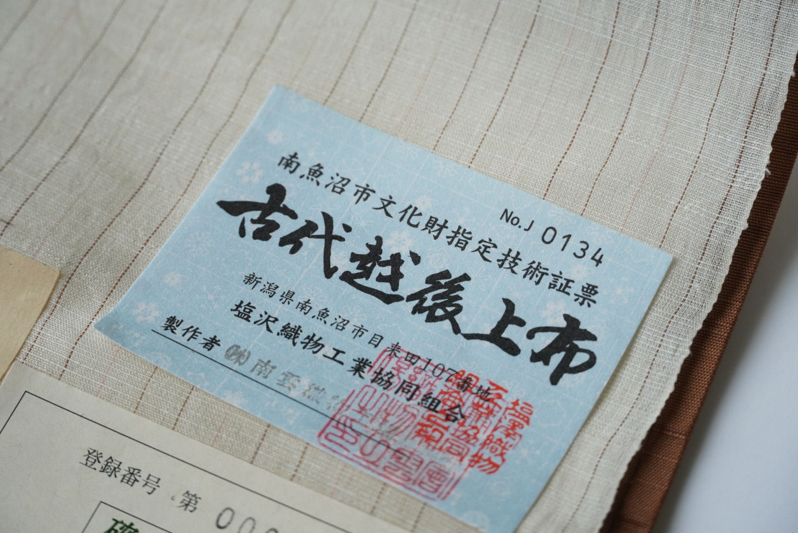 相反する伝統技術(極細の製糸=苧績み技術と精密精緻な染織技術)の結晶が越後上布です。