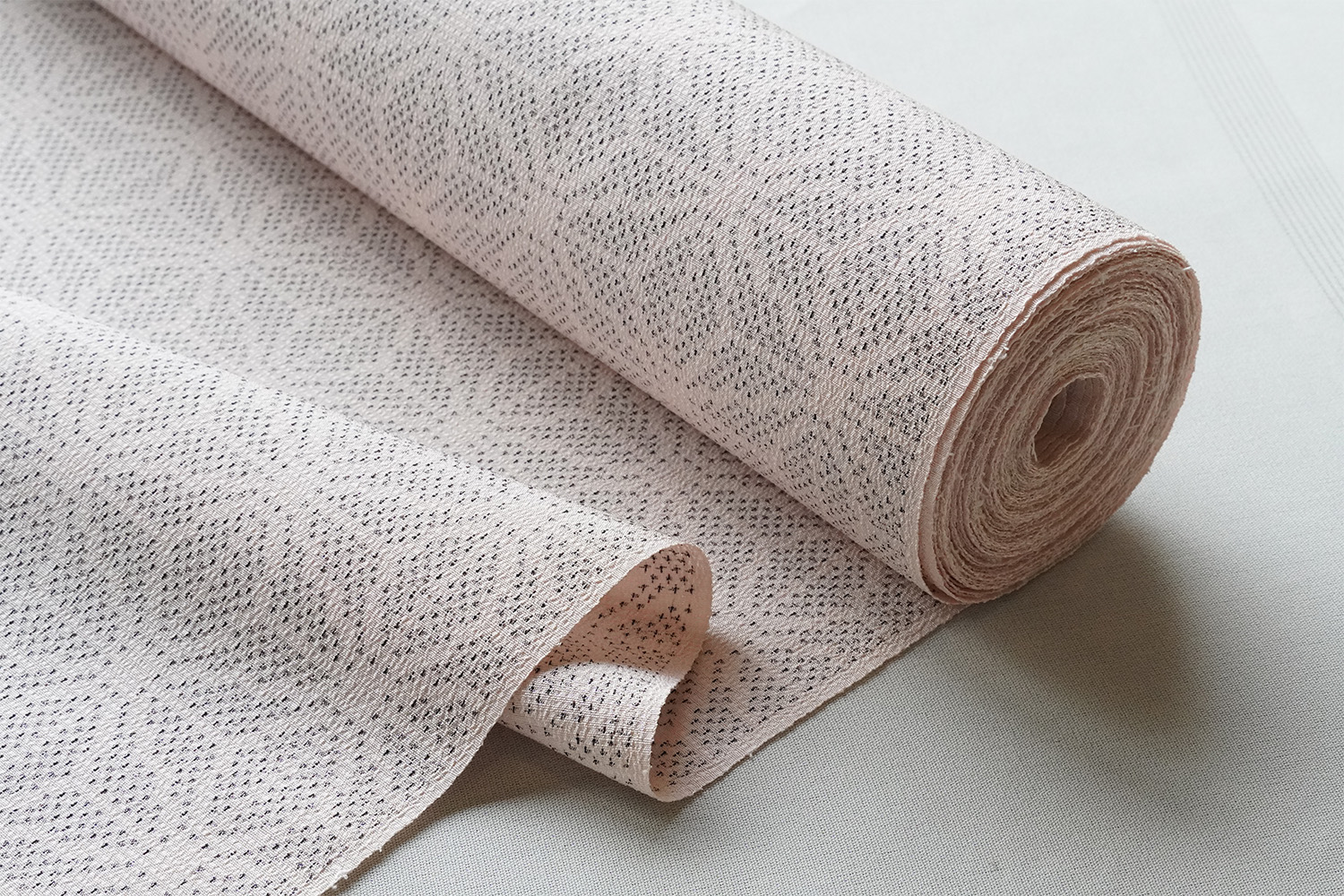強撚糸(きょうねんし)が生む独自の「シボ(小さな凹凸)」が特徴で、織り上げた後に「湯もみ」を施すことで、この風合いが生まれます。