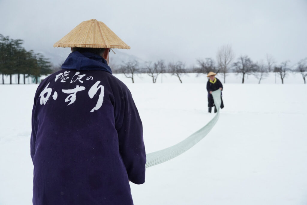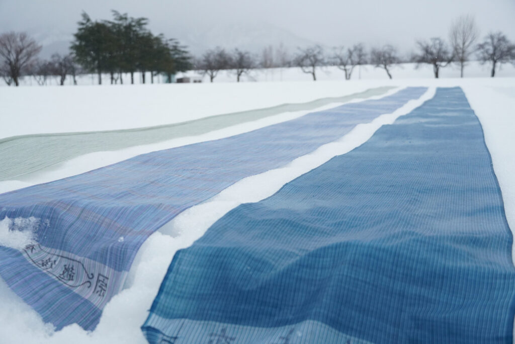 1反が完成すると晴れた日に雪の上にさらし、日光と雪の化学反応(オゾン)で布を漂白します。